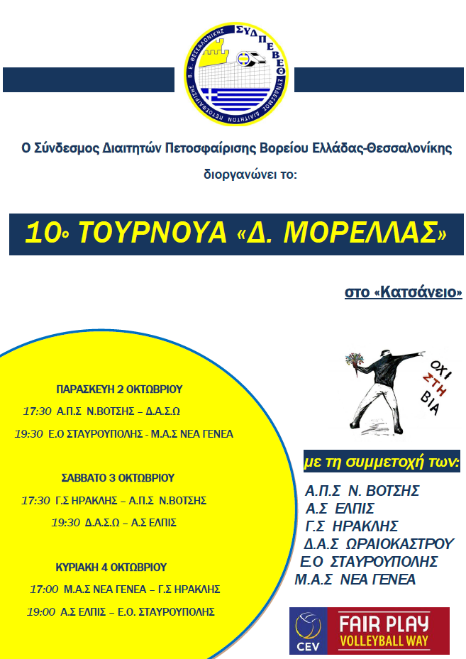 Το τριήμερο 2-4 Οκτώβρη θα διεξαχθεί το φετινό τουρνουά του συνδέσμου στη μνήμη του εκλιπόντα διαιτητή Δημήτρη Μορέλλα.